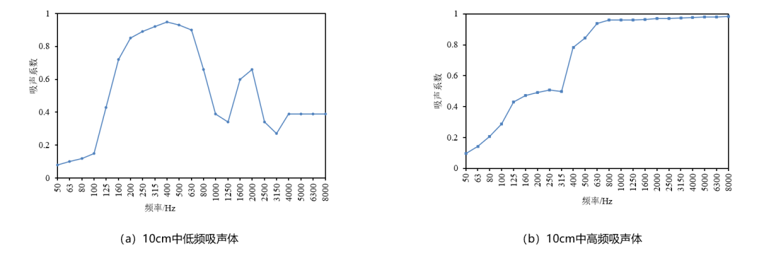 进一步仿真了不同厚度(10cm、6cm、2cm)和不同铺设面积(10%、20%、30%、40%、50%)的中高频吸声体的降噪效果。结果显示,随着吸声体厚度的增加和铺设面积的扩大,降噪效果显著提升。