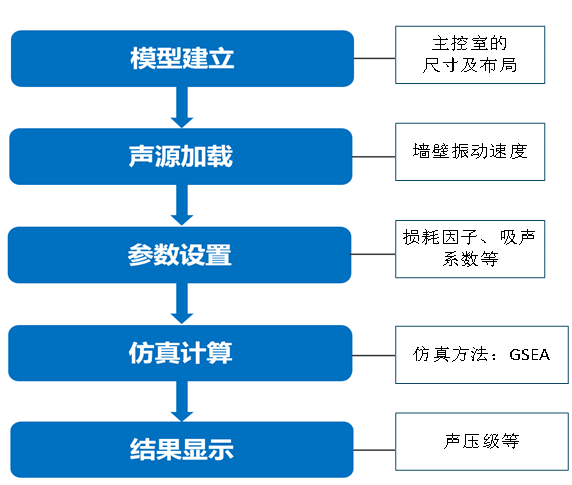 2. 以核电站主控室为对象,使用统计能量法,建立大空间宽频噪声仿真分析流程及方法。
