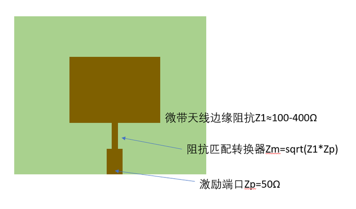 从这里可以看出辐射贴片的阻抗不是以端口为准的,是以能有效辐射设计的。