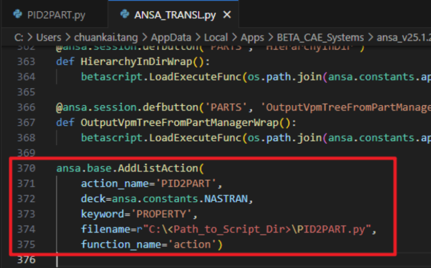 function_name: 在脚本中函数的名称,在PID2PART.py中我们想要调用的函数名称为action