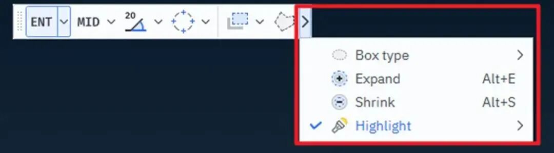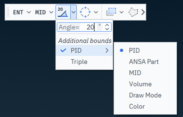 如图所示的是一系列高级辅助选取工具,其可用选项会根据当前选取的实体类型动态调整: