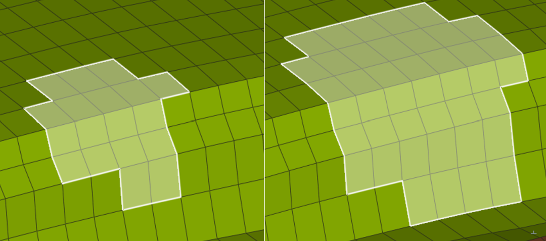在ANSA v25中,新增了扩张(Expand)和减缩(Shrink)功能,可以快速对当前选区扩张或缩减一个单位实体,也可以通过快捷键Alt + E和Alt + S执行扩张和减缩功能。