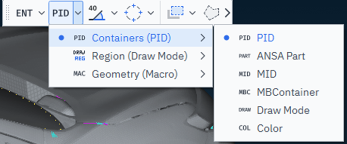 Container (容器):容器功能允许用户按照逻辑分组选取实体。例如激活PID作为容器类型后,点击任意单元,系统将选中与所选单元同属同一PID的所有可见单元。