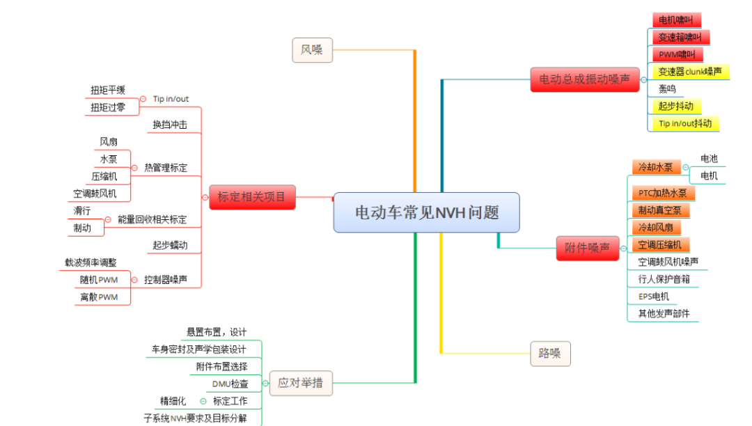 很多人都说,电动车开起来悄无声息,只有高级的静谧感。但事实真的如此完美吗?当没有了发动机的轰鸣,一些曾经被掩盖的声音和振动反而凸显出来,构成了电动车独有的NVH难题。今天,我们就借助一张清晰的思维导图,带你一览电动车常见的“声振粗糙度”问题。