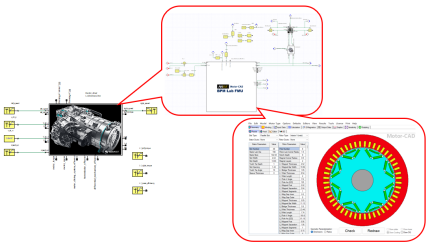 当获得L3第一轮设计结果(基于稳态)后,即可开始L2第二轮设计(基于动态)。如所示,为本示例给出的根据L3稳态设计结果的Ld,Lq,磁链,转动惯量等电机指标,配套出的其他零部件,组成的完整动态电驱系统。