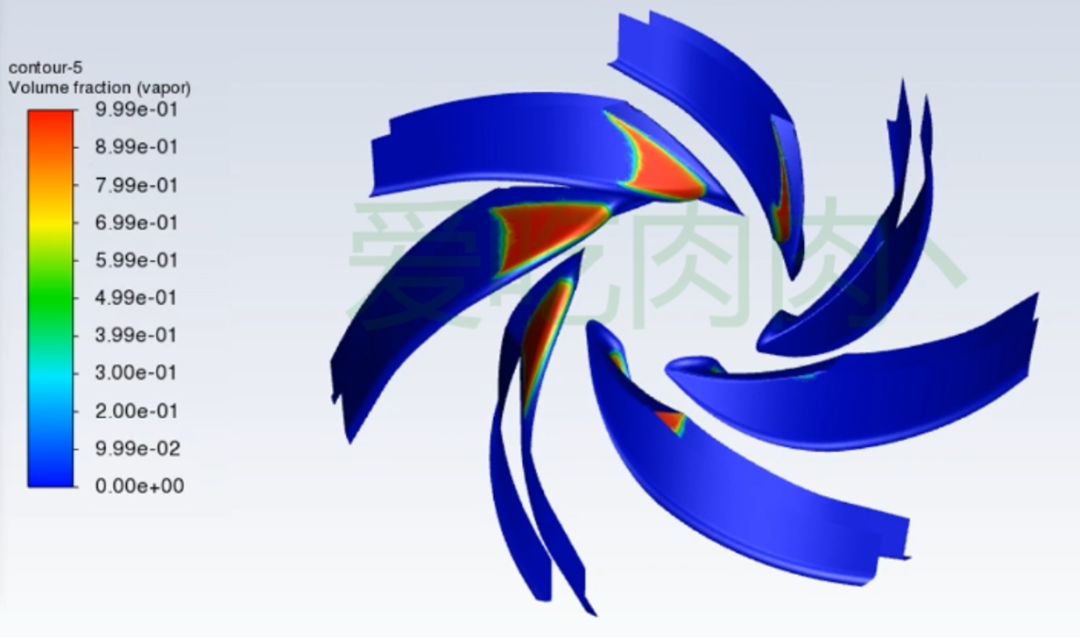是液体在工作温度下的汽化压力 。这个公式是根据伯努利方程推导而来,它考虑了液体在泵吸入口处的压力能、动能以及液体的汽化压力等因素。然而,在实际应用中,理论计算往往存在一定的局限性。首先,公式中的一些参数,如泵吸入口处的压力和流速分布,很难准确测量或计算。泵的内部流场非常复杂,存在着各种流动损失和局部阻力,这些因素会导致实际的压力和流速分布与理论计算值有较大偏差。而且,理论计算通常基于一些简化的假设,如将液体视为不可压缩流体、忽略流体的粘性和表面张力等,这些假设在某些情况下可能不成立,从而影响计算结果的准确性 。 实验测量方法是通过在实际的泵装置上进行实验,直接测量泵在不同工况下的汽蚀余量。实验测量通常采用的是改变泵的吸入条件,如调节吸入管路的阀门开度、改变吸入液面的高度等,同时监测泵的性能参数,如流量、扬程、功率等,当泵的性能出现明显下降时,对应的吸入条件下的汽蚀余量即为实验测量的汽蚀余量。这种方法能够直接反映泵在实际运行中的汽蚀情况,具有较高的可靠性。但实验测量也面临着诸多挑战。实验需要专门的实验设备和场地,成本较高。而且,实验过程较为复杂,需要严格控制实验条件,以确保实验结果的准确性和重复性。实验测量只能针对特定的泵和工况进行,对于不同类型的泵或不同的运行工况,需要重新进行实验,这使得实验测量的通用性较差。实验测量还受到测量仪器精度和测量方法的限制,可能会引入一定的测量误差 。 在实际应用中,汽蚀余量的计算还面临着许多复杂的因素。旋转机械的运行工况往往是动态变化的,流量、扬程、转速等参数会随着实际需求的变化而改变,这使得汽蚀余量也会随之变化。在某些工业生产过程中,泵的流量可能需要根据生产线上的物料变化进行频繁调整,在不同的流量下,泵内的流场结构和压力分布都会发生变化,从而影响汽蚀余量的大小。流体的物理性质,如密度、粘度、表面张力和汽化压力等,也会随着温度、压力等条件的变化而改变,进而对汽蚀余量产生影响。当输送的液体温度升高时,其汽化压力会降低,这就增加了汽蚀的风险,对汽蚀余量的要求也会相应提高。此外,旋转机械的内部结构和表面粗糙度等因素也会影响汽蚀余量的计算。叶轮的形状、叶片数、进出口直径以及叶轮与泵壳之间的间隙等结构参数,都会改变泵内的流场特性,从而影响汽蚀余量的大小。叶轮表面的粗糙度会增加流体的流动阻力,导致压力损失增大,进而降低汽蚀余量 。 在我的Fluent离心泵水力设计仿真与性能优化方法课程,通过 “设计计算→三维建模→CFD 仿真→后处理预测” 完整闭环,以真实案例(清水泵 )为驱动,详细讲解了离心泵的设计过程,同时,特定章节还针对离心泵的空化模拟,进行了比较详细完整的仿真流程,从额定工况验证到临界空化点捕捉,一步步算出泵的汽蚀余量(NPSH),让空化问题 “可视化” 解决。我们来具体看一下: