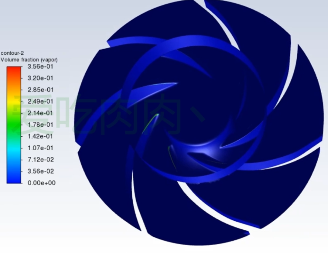 空化本质是气液两相流动,案例选择行业常用的Mixture混合模型 —— 它既能高效计算气液两相的混合运动,又不用像VOF模型那样追求极高的网格分辨率,兼顾精度和计算效率。开启模型后,重点观察叶轮进口边、叶片前缘区域的压力变化,当局部压力低于介质蒸汽压时,会出现微小气泡,这就是空化的 “萌芽状态”,此时会先记录下这个初始压力值。