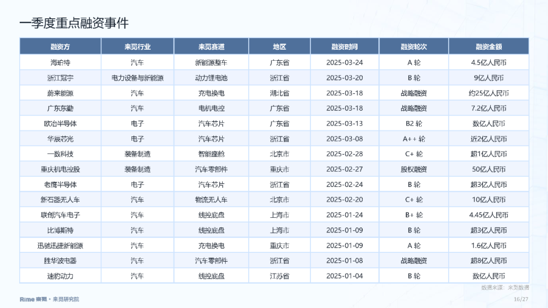 【报告】新能源及智能网联汽车2025年一季度投融市场报告