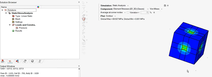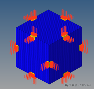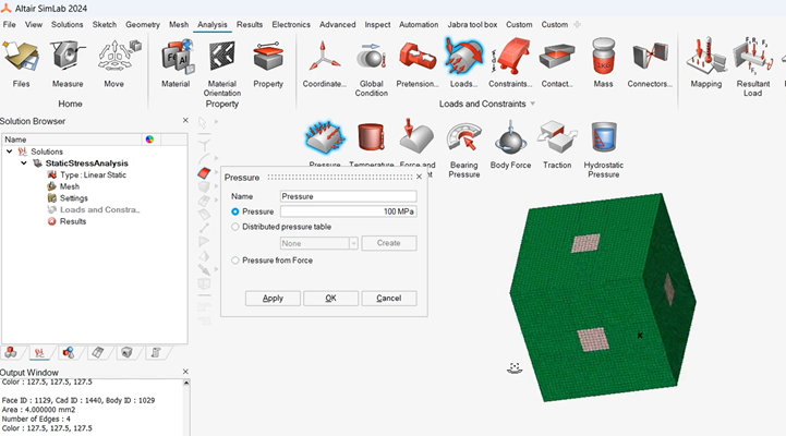 在Analysis-->Loads下选中Pressure, 选中晶格六个面中间的正方形小面,对这些小面施加100MPa的压力。