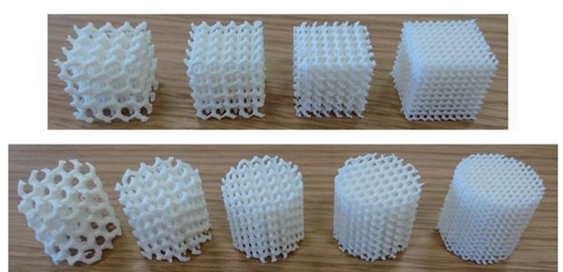 超材料(Metamaterials)是指通过人工设计和制造,具有天然材料不具备的特殊性质的材料,它们的独特性能主要来源于其结构,而不是成分。通过对微观结构进行拓扑优化设计,可以针对特定的使用条件,设计出针对该工况性能更高的力学材料,同时减轻重量。随着3D打印技术的日趋成熟,使这种构想不再仅仅停留在图纸上,让超材料得以展现出广阔的工程应用前景。下图展示了一些经过了拓扑优化的点阵结构的3D打印样品[1]。