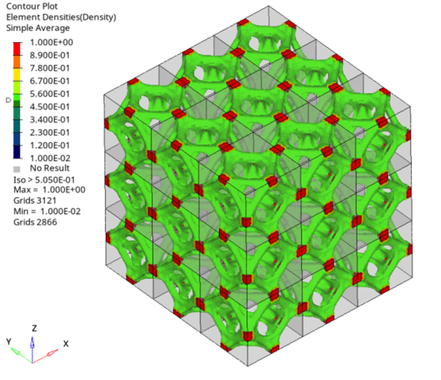 微观结构的拓扑优化可以帮助设计超材料(metamaterial), 这些材料可以具备独特的力学性能并且重量更轻,并结合3D打印技术使其得以实现。本文基于Altair SimLab(求解器为Optistruct)复现了一个点阵结构拓扑优化的案例,展示了不同边界条件下单个晶胞的优化结果,如有需要,还可在后处理中将若干个晶胞进行叠加获得点阵结构。