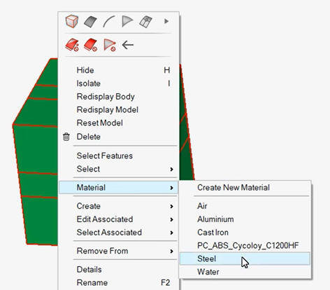 右键选中几何体,在自带的材料库中随便选一个Steel即可。这里材料选择对优化结果并无影响,但不能为空。