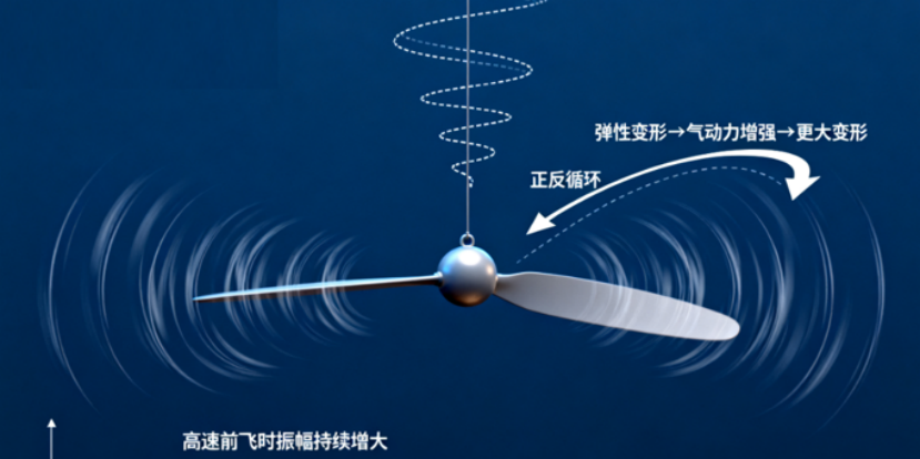 气动弹性耦合可能诱发自激振动。当桨叶弹性变形与气动力形成正反馈时,系统会持续吸收能量并维持振动,这种现象在高速前飞时尤为显著,可能导致结构疲劳失效。