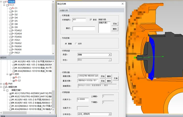 3DCC通过多环并行尺寸链建模与概率仿真分析,定量评估各公差项对装配间隙与啮合精度的影响。系统自动生成“贡献率排序”,帮助工程师锁定对装配合格率影响最大的关键尺寸。实现从经验判断到数据决策的转变,使差速器装配过程更加可控、高效。