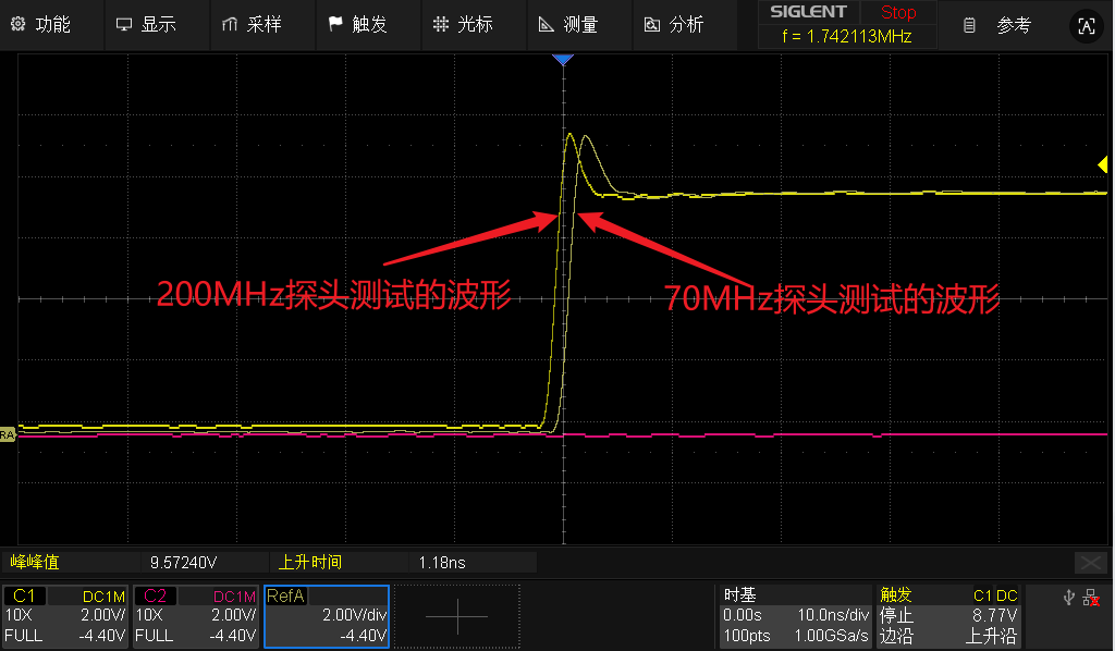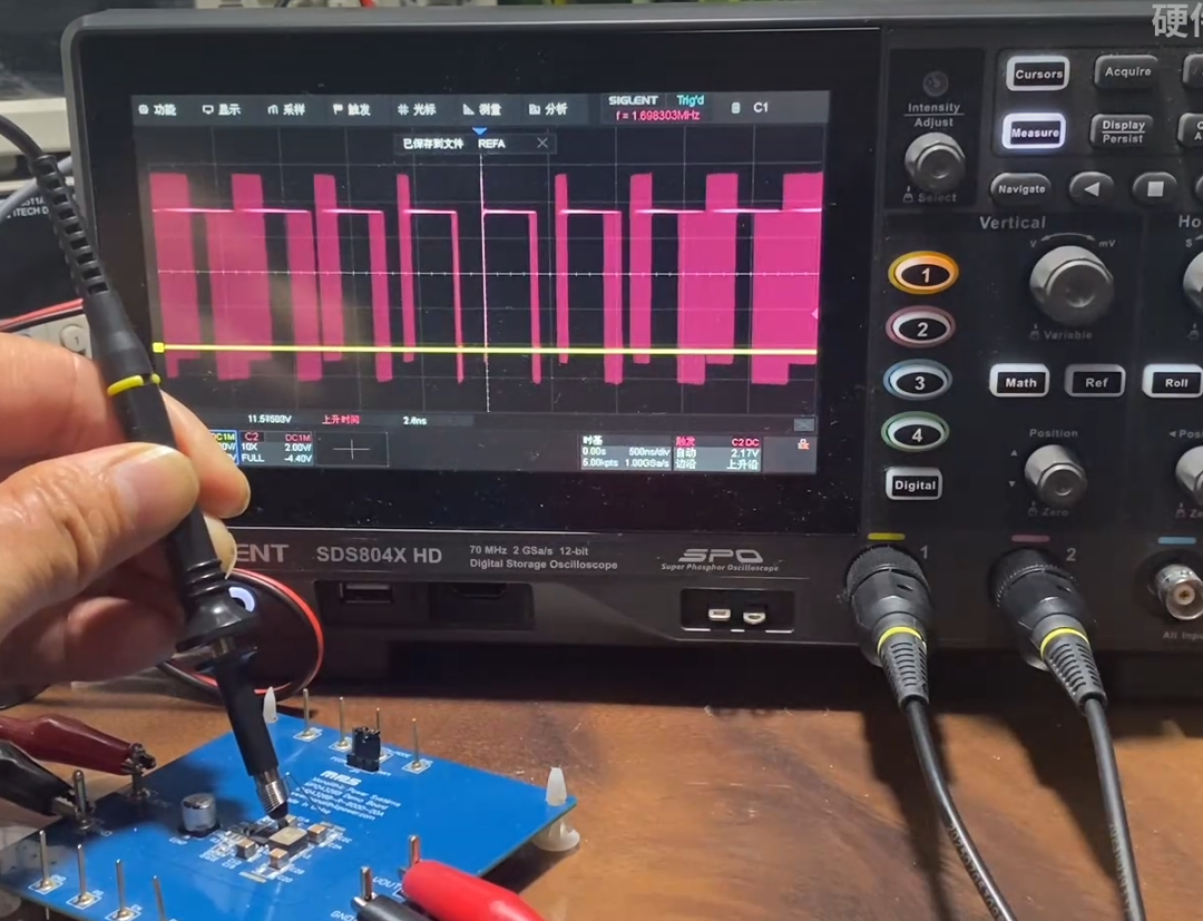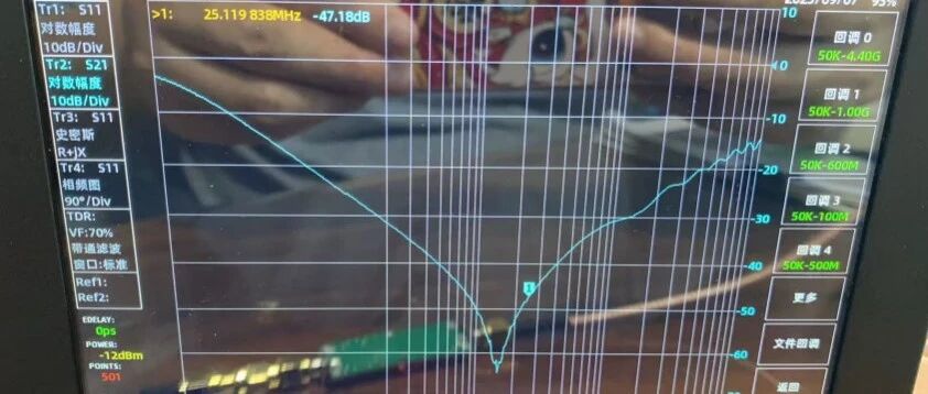 在硬件电路设计中,我们经常会使用到退耦电容。退耦电容是并联在电路中。这种应用,对电路的影响表现是怎样的,我们今天来具体看下。搭建一个简单的测试电路,使用矢量网络分析仪(VNA)作为测试电路的信号源VG1,VF1接在VNA的port1(发送端),VF2接在VNA的port2(接收端),电容C1 47pf并联在信号源VG1的两端,起到退耦作用,电路如下图所示。此时,我们打开VNA的S21迹线,可以看到如下曲线。看到上面的S21曲线,有什么想法或者是否似曾相识?在《用100nf电容给72Mhz时钟信号退耦合适么?》文章中,我们曾给出一颗0.1uf电容的频率阻抗曲线,注意看紫色的曲线,是电容的阻抗Z,趋势和上面的S21曲线很相似,左侧呈容性,右侧呈感性,中间为自谐振频率。我们再看下S21曲线,向下有个波谷。当频率点在波谷值左侧时,我们打开史密斯圆图,可以看到虚部在下半周,虚部为负值。根据“上感下容”的规律,可以看出此时电容是呈容性。当频率点在波谷值右侧时,我们打开史密斯圆图,可以看到虚部在上半周,虚部为正值。根据“上感下容”的规律,可以看出此时电容是呈感性。 当频率点在波谷值时,我们打开史密斯圆图,可以看到虚部在上半周,虚部为正值。这是由于测试工装的原因,在校准时不能完全解嵌。此时虚部应该为0,电容呈现为纯阻性。在史密斯圆图中,marker点应该位于横轴处。这里存在些许误差,各位了解其趋势即可。先聊到这里,梳理下今天讨论的内容比较简单,用VNA来观察电容的S21曲线,并识别其容性/感性/阻性。怎么样?一个简短的问题,给出的回答可浅可深,就看你对这个知识点的理解达到怎样的程度。你学废了么?来源:硬件微讲堂