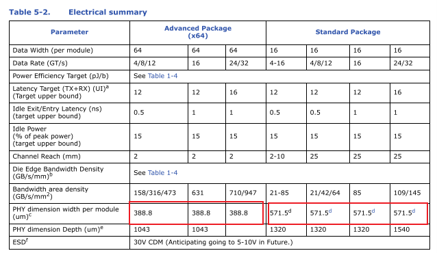 e.PHY尺寸深度是一个信息参数,取决于球间距。表中的数字基于10列x64高级封装的45 um凸点间距和标准封装的100 um凸点间距。有关10列、16列和8列凸点矩阵结构中x64和x32高级封装模块组合的PHY尺寸深度的信息值,请参见第5.7.2节。