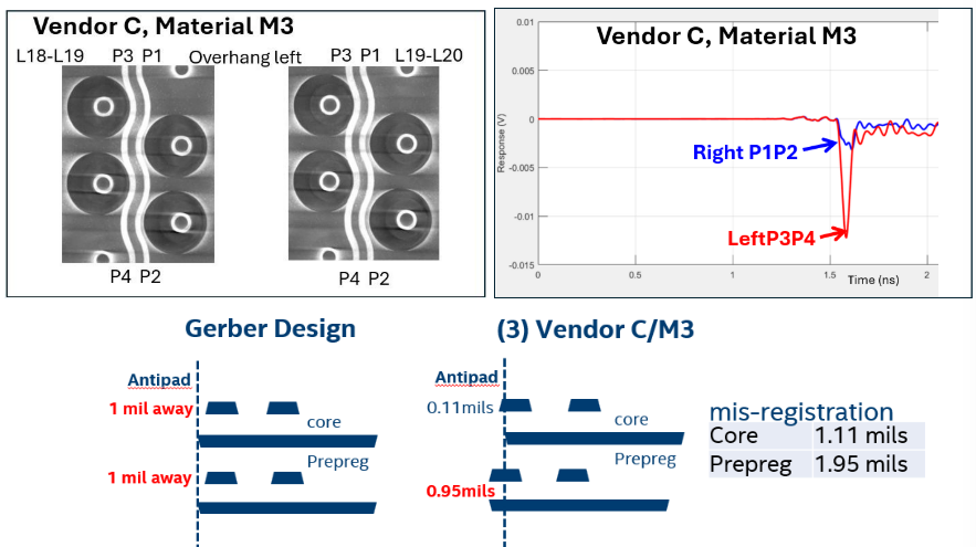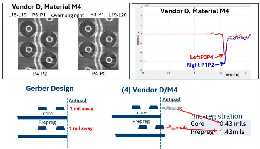 基于上述分析,我们可以确认引脚场串扰恶化受到PCB制造变化的显著影响。此外,测量可以用于轻松预测高速差分对的哪一侧突出到反焊盘。