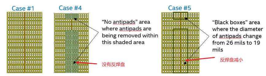 Case4越过的反焊盘最少,串扰最小。影响较大。