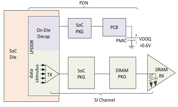 2、SIPI时序中需要考虑由VDDQ轨供电的系统SoC IO、封装和PCB、DRAM IO,这一般是SIPI工程师仿真可以覆盖的部分。