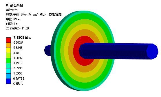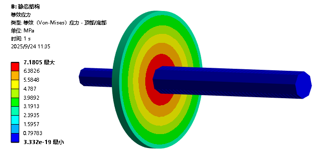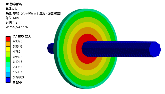 在本例中,不约束自转自由度,不打开弱弹簧和准静态解,也能成功计算,结果如下:(注意,换个模型或软件版本,可能会报错)