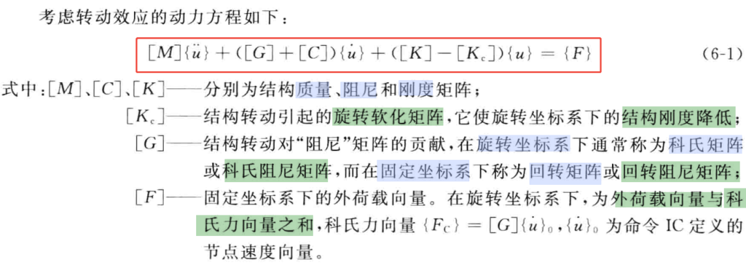 对于刚度矩阵,转子动力学包含了旋转软化效应,笔者补充,也可能带来应力刚化效应。对于阻尼矩阵,转子动力学包含了回转效应。
