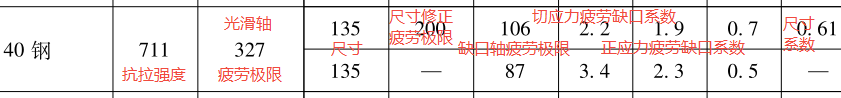 通过查表,已知疲劳数据如下: