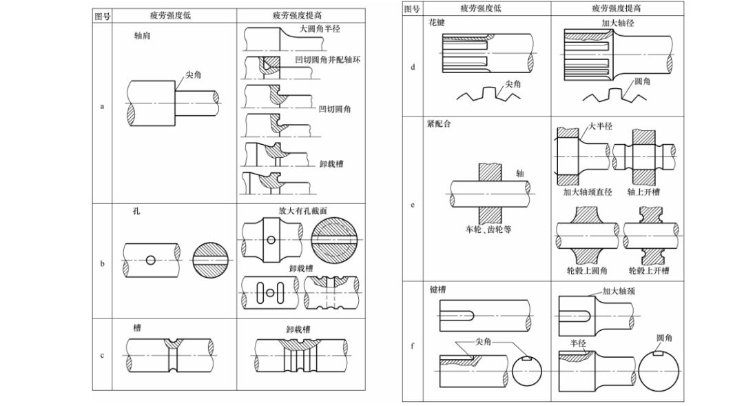 具体建议有:适当加大危险截面尺寸;避免尖角和适当加大过渡圆角半径;设卸载孔、卸载沟或卸载槽,改进应力流线,以降低应力集中;将微动磨损与应力集中分离开来等。