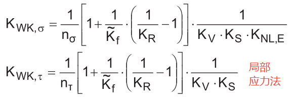 粗略来看,在截面系数环节名义应力法多了Kt,这是为什么呢?因为局部应力法在工作应力环节也多了Kt。