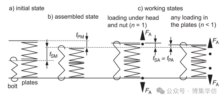 在VDI2230中,螺栓连接的轴向变形是通过简化的机械弹簧来描述的。对于同心夹紧,螺栓被认为是拉伸弹簧,被夹紧件被认为是压缩弹簧。这个力学模型,听起来很友好,让人兴奋。但是不是过于简化了?