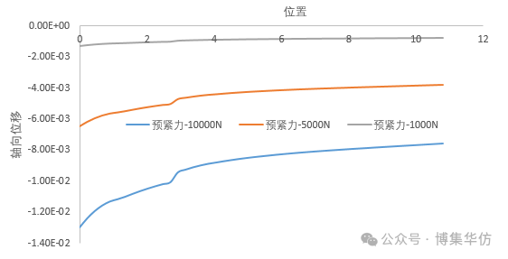 虽然螺栓连接分析包含接触非线性,但被夹紧件各位置的轴向位移与预紧力确实是线性关系。