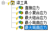 2)查看梁工具:可以查看直接应力(轴力导致的应力)、弯曲应力(弯矩导致的应力)、组合应力(轴力和弯矩共同导致的应力)。应该指出,这里不支持查看剪切应力,只有法向应力,因为对于梁构件,剪切应力远小于法向应力。3)横截面:对于异型截面的梁,当不能完整查看梁工具的结果,可以修改默认的预集成为网格,则可以查看梁工具。 4)查看等效应力:梁单元默认无法查看等效应力,但修改梁截面结果为是,则可以查看等效应力。等效应力包含了法向应力和剪切应力。