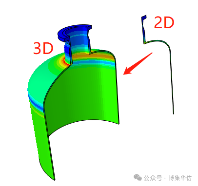 默认情况下,轴对称分析属于二维分析。但主流仿真软件(ANSYS、ABAQUS等)都允许用户查看三维效果。