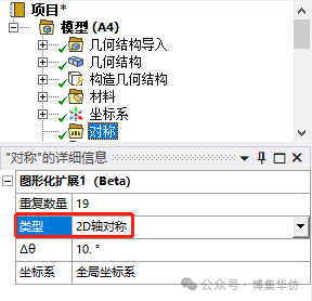 将类型改为2D轴对称,(19-1)*10°=180°: