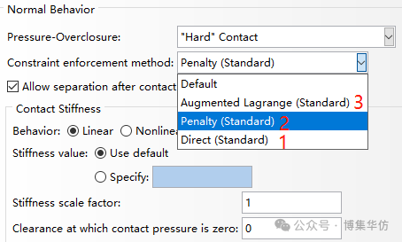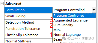 两个软件的法向算法高度一致,ABAQUS默认为直接法,也称为拉格朗日乘子法,在ANSYS中称为法向拉格朗日法。ANSYS默认为增强拉格朗日法,在ABAQUS中也具备。