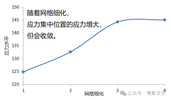 应力收敛解,也称为网格无关解。是指在有限元分析中,当网格细化到一定尺寸后,随着网格继续细化,应力结果基本不变的现象。这种现象出现在应力集中位置。 过度关注的成因