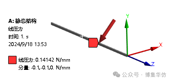 在梁的两个横向分别施加0.1N/mm的均布载荷: