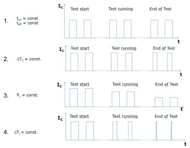 功率循环测试可采用多种控制策略,不同策略下所得寿命结果差异显著,具体如下表所示: