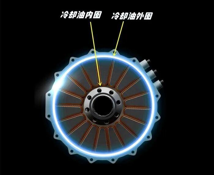YASA 公司在直接液体冷却技术方面处于领先地位,其开发的直接油冷技术通过在无轭分段电枢拓扑中实现定子芯的完全密封,油液循环进行高效散热。油道设计包括内外循环,采用逆时针和顺时针流动,确保每根扁平导线都被油液完全包围,实现有效冷却。这种冷却方法不仅冷却绕组,还冷却定子齿,每个齿和绕组都有多个表面与冷却剂接触,大大增加了热交换面积。