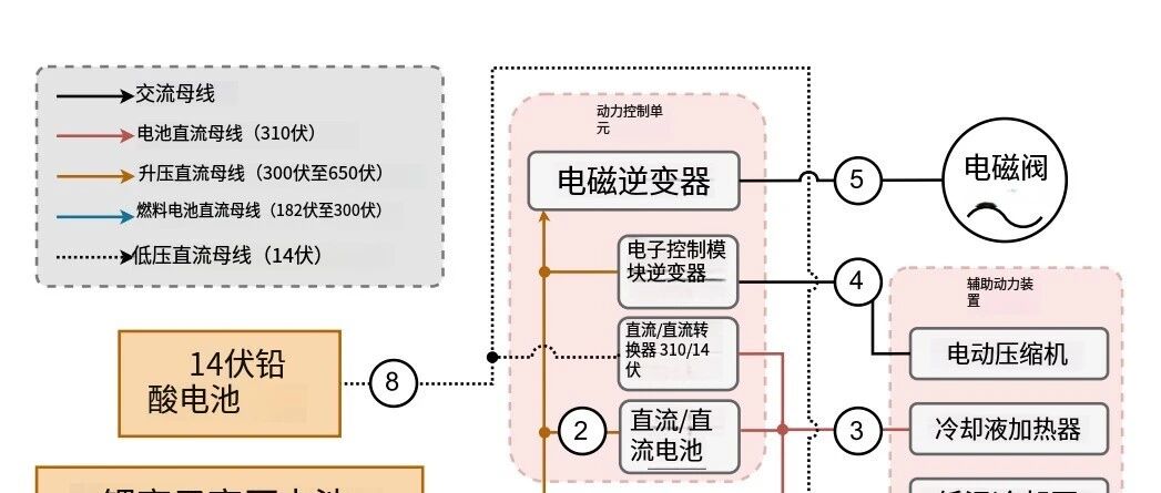 燃料电池电动汽车(FCEVs)作为传统内燃机汽车(ICEVs)的理想替代方案,相比电池电动汽车(BEVs)续航更长,且温室气体排放更低、车载能源利用率更高。本文以丰田 Mirai II(第二代 Mirai)为研究对象,通过台架试验,对其能耗、功率平衡、尾气排放等关键性能指标展开评估,分析了不同行驶工况和能量需求下的车辆响应,涵盖动力总成的电气参数、冷却回路及尾气等多方面变量,深入剖析了能量转换过程与燃料电池系统性能。研究发现,低功率需求时燃料电池堆低位发热值(LHV)效率峰值约 70%,接近最大输出功率(130 kWe)时降至 54%;系统层面效率则分别为 62% 和 46%。WLTC 行驶循环中氢耗为 0.8 kgH₂/100 km,稳态功率需求下氢吹扫量占总燃料使用量的 0.8%-2.4%,为可持续交通解决方案提供了数据支撑。 1引言 结合低碳制氢技术的聚合物电解质膜燃料电池电动汽车(FCEVs),在客运、货运、重型道路运输及非道路、海运、铁路运输领域,均是降低全球温室气体(GHG)排放的重要选择。尽管 FCEVs 从制氢到机械动能输出的整体效率仅为电池电动汽车的 1/2-1/3,但车辆效率与氢耗仍是评估其环境影响的核心指标。氢排放间接影响全球变暖,不同时间跨度下其全球变暖潜能值(GWP)差异较大,且尾气中因阳极吹扫会释放氢,现有研究对该排放数据的报道有限。此外,氢在生产、加工、运输、分配全价值链中均存在排放,需精准量化各阶段排放。目前燃料电池汽车台架测试研究多聚焦氢耗与效率,本文通过丰田 Mirai II 的台架试验,补充了该车型的性能数据,同时分析了热损失、氢排放及空气回路等关键参数,填补了现有研究空白。与第一代车型相比,Mirai II 在燃料电池堆紧凑性、性能、行驶表现、续航里程及空气动力学方面均有提升,但台架试验无法完全模拟真实驾驶环境,且未考虑不同加氢站的氢质差异。 2车辆介绍与测试方案 2.1 动力总成布局与电气测量设备 丰田 Mirai II 以 128 kW 燃料电池堆为主要动力源,搭配 1.24 kWh 高压锂离子电池辅助应对瞬态负载及实现再生制动,通过三个 IV 型氢罐存储 5.6 kg 氢气。测试中安装了多个钳式电流传感器,监测高压电池输出、转换器输出等关键电气参数,采用 Hioki PW3390 功率分析仪采集数据。动力总成辅助系统(BoP)包含空气回路电动压缩机(eCompressor)、氢泵、冷却泵等组件,其功耗通过台架测量与车载诊断数据结合计算,其中 eCompressor 是功耗最高的辅助设备。受安全限制,未采用氢质量流量计,转而通过燃料电池电流法和储罐压力法测量氢耗。 2.2 尾气排放测量设备 车辆排气系统连接台架排放监测系统,通过皮托管流量计测量空气质量流量,采用三个传感器监测氢排放。传感器 1(热导式,响应时间 < 1 s)用于量化氢吹扫量,传感器 3(响应时间 < 0.5 s)用于检测吹扫事件,传感器 2 因响应时间过长未用于精准测量。热导式传感器对氧气存在交叉敏感性,需结合两种传感器数据修正。测试中还监测了水蒸气、二氧化碳、氧气等多种气体,涵盖欧 6 标准管控与非管控气体。 2.3 空气回路测量设备 空气回路由空气过滤器、压缩机和水冷中冷器(CAC)组成,无外部加湿器。在压缩机进出口、燃料电池堆入口三个位置监测空气压力与温度,同时记录实验室环境参数,通过 CoolProp 库计算空气热力学性质(如水分饱和度),为分析阴极化学计量比和压缩机效率提供数据。 2.4 冷却回路测量设备 Mirai II 包含两条冷却回路:高温回路(HT,工作温度约 333 K,高功率时达 363 K)用于冷却燃料电池堆,低温回路(LT,工作温度约 303 K,最高 318 K)用于冷却功率电子设备及电动压缩机。在冷却回路关键位置监测压力、温度和体积流量,通过 coolant 密度、比热容与温度的关系计算热交换量,两条回路共用一个前部风扇散热,牵引电机则通过独立油路冷却(本研究未涉及)。 2.5 车载诊断数据 借助丰田 GTS TechStream 软件从控制器局域网(CAN)采集 55 个信号,包括堆进气流量、冷却剂温度、压缩机功率、堆电压电流等关键参数。由于 DC/DC 升压转换器与燃料电池堆集成,无法直接测量堆输出电流,需通过 CAN 数据获取。CAN 数据采样频率(4 Hz)低于台架数据(10 Hz),经交叉相关与重采样处理后整合使用。 2.6 氢耗测量方法 基于燃料电池电化学反应原理,通过堆电流计算氢质量流量(优先采用的瞬时测量方法);同时参考 ISO 23828 和 SAE J2572 标准,利用储罐压力、温度数据(结合红外读数与 CAN 数据)及仪表盘显示信息估算氢耗。WLTC 循环中,电流法测量值与厂家公布值的相对误差为 4.5%,是最精准的瞬时测量方法,储罐压力法(红外读数)误差最大(28.8%)。 2.7 行驶循环 测试在 IFPEN 的 FCEV 专用滚筒台架上进行,环境温度控制在 10-35℃,采用欧洲 CE 认证的道路负载参数。测试涵盖 WLTC、US06、RDE 等多个行驶循环,以及恒速变坡度的稳态循环(如 120 km/h 下坡度 1.5%-8.5%,50 km/h 下坡度 0%-11.3%),生成约 100 个循环的数据库(含 100 万个运行点),用于评估不同工况下的燃料电池效率、辅助系统性能及瞬态响应。 3燃料电池系统分析 3.1 燃料电池堆与系统效率 堆效率通过 CAN 获取的电压数据计算,低功率需求时 LHV 效率峰值约 70%,接近最大输出功率(130 kWe)时降至 54%;系统效率(考虑 BoP 功耗)则分别为 62% 和 46%。35 kW 系统功率时,升功率与降功率过程中系统效率存在 3.7% 的差异(57.5% vs 53.8%),堆效率基本稳定,表明效率受功率历史影响。最大系统输出功率 110 kW 仅能维持 5