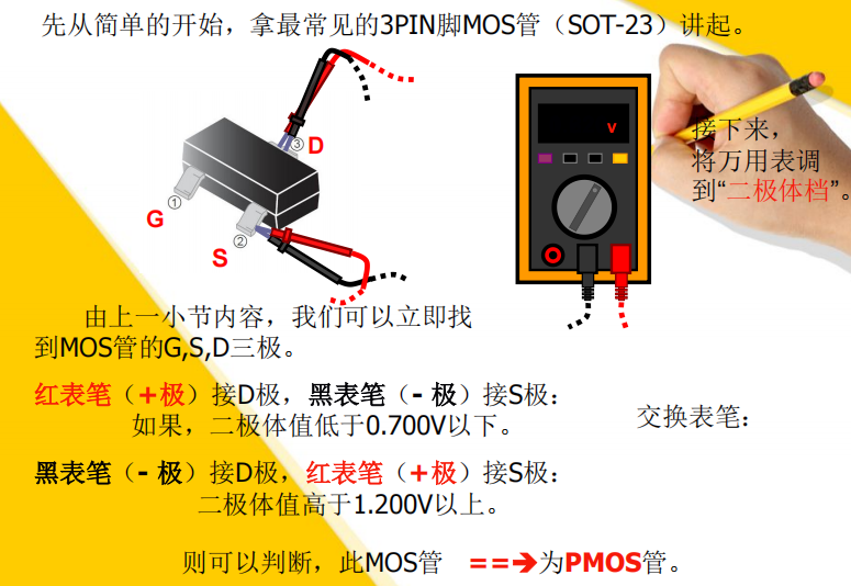 万用表测量:用二极管档测DS,红黑表笔怎么搭?0.7V和1.2V背后藏着什么秘密?
