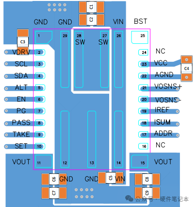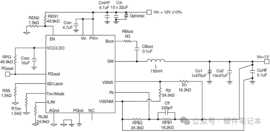 它的单相操作简单高效,若需要更高电流,可尝试多相并联则能提供更大的负载电流,适用于大功率FPGA、ASIC供电等场景。