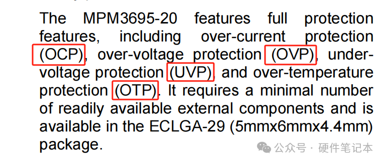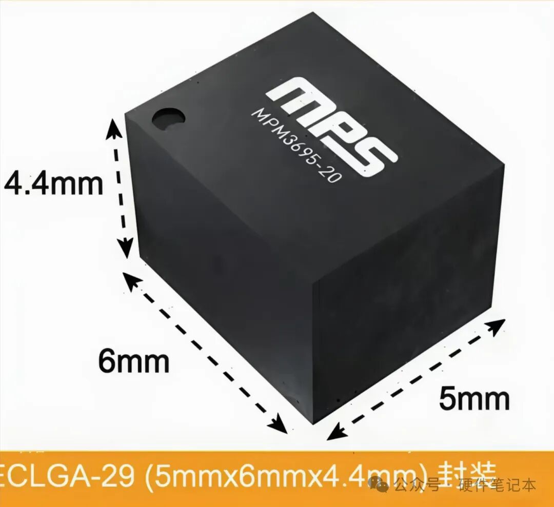 MPM3695-20采用了 MPS 的先进封装技术,将 Buck 转换器、MOSFET、电感和无源元件全部集成在一个超小封装内(5mm×6mm),因此看起来更像一个QFN封装的IC,而非传统的分立电源模块。这种设计大幅减少了PCB占用面积,同时优化了EMI和热性能。