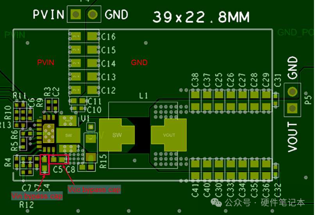 图5:常规DC/DC电源芯片加外围电路推荐lyout布局