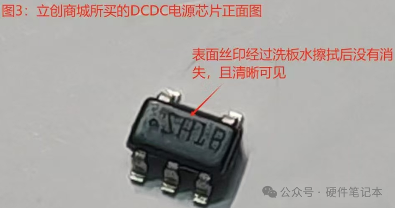 而立创的芯片丝印清晰牢固,即使用洗板水擦拭也毫无变化。