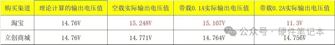 性能差异:淘 宝芯片在0.2A负载下直接崩 盘,而立创的芯片轻松应对。
