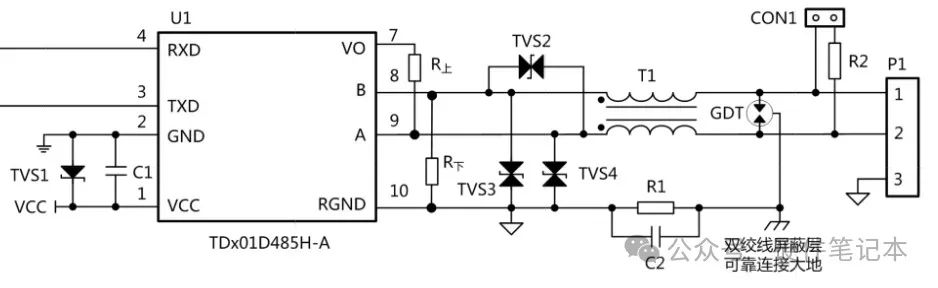 整机在做EFT抗干扰测试时,当干扰源从外界注入后,我们希望可以让干扰最大程度通过TVS3或TVS4回到源头,从而避免经过内部隔离芯片影响到我们产品的正常运行。