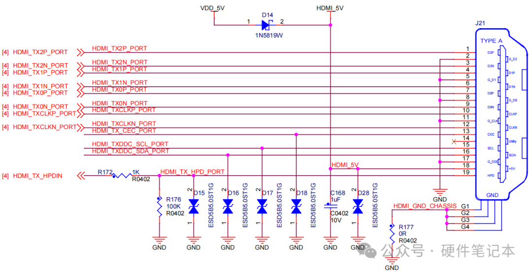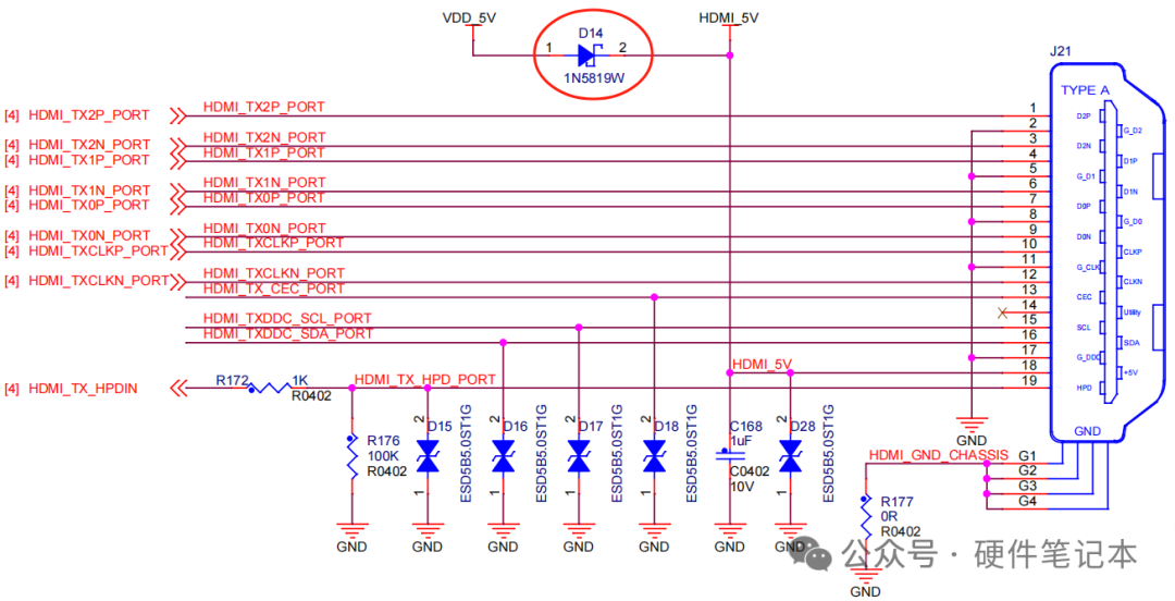 此外,这种设计还有一个目的,用于保持HDMI接口电源电压的稳定。如果 sink 端设备尝试提供一个不同的电压,串联的二极管可以防止这个非标准电压影响到 source 端的敏感电路。