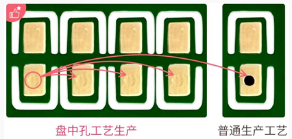 在焊盘上打孔,消除了引线长度,减少了寄生电感,从而减少信号反射和延时,提高信号传输质量。