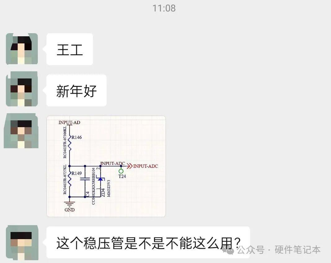 有人提议,直接将稳压二极管加在输入电压INPUT_AD,但输入电压是波动的,直接在这里放置稳压二极管可能不太好,最好在ADC接口处进行稳压。