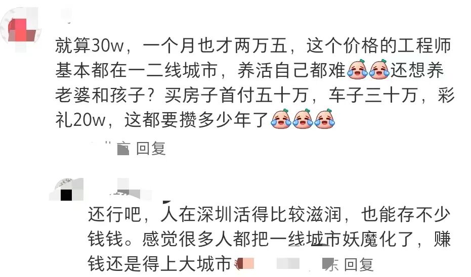 2、一,二线城市年薪30w并不多,这个婚结不起。